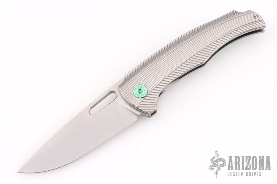 OBJ-1 Medium Tumbled Titanium, Stonewash Drop Point Blade
