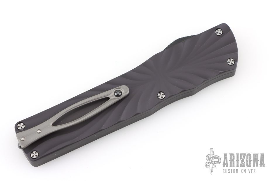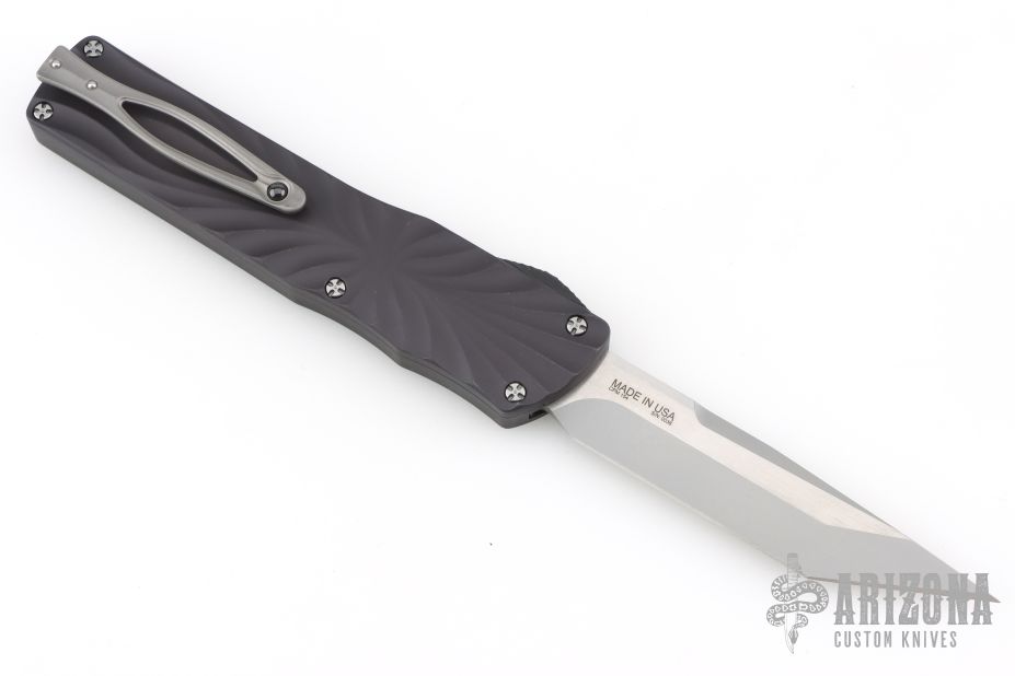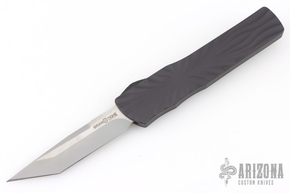 This Large Twist Tighe by Brian Tighe and Friends features a two-tone tanto blade. The handle is black coated aluminum with a tip up milled titanium clip with a ceramic ball. Comes with original box, #0038. Excellent condition.