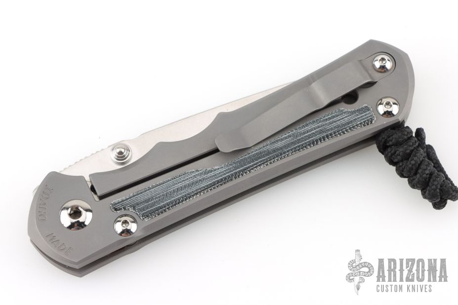 This Large Inkosi from Chris Reeve features a tumble finish tanto blade with dual thumb-studs and a glass blasted titanium frame with black canvas micarta inlays, tip up titanium pocket clip. Nice detent, lockup and blade seating. Comes with original box, papers dated July 11, 2024. Excellent condition.