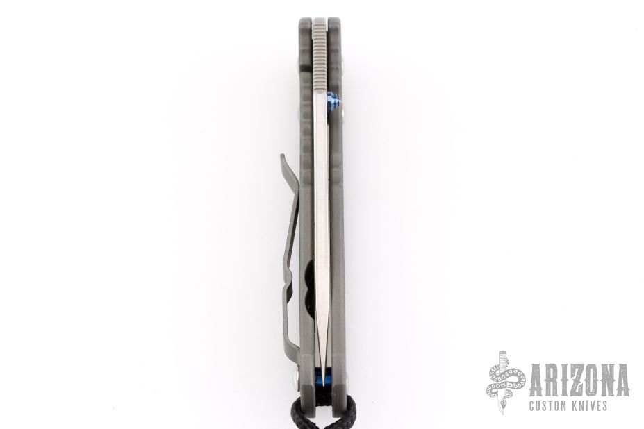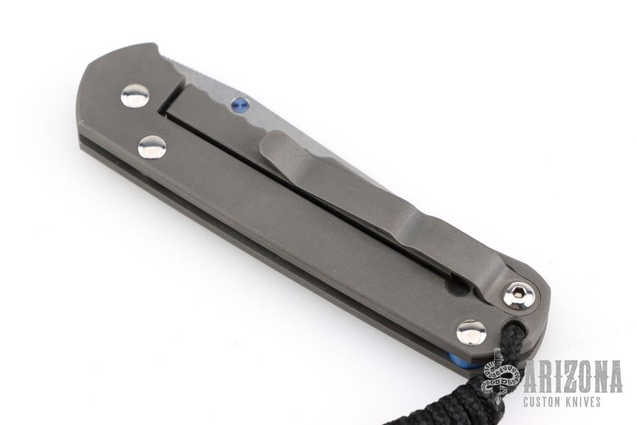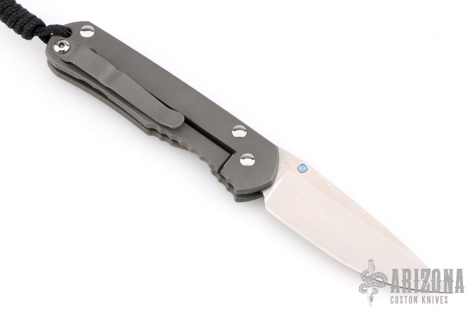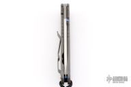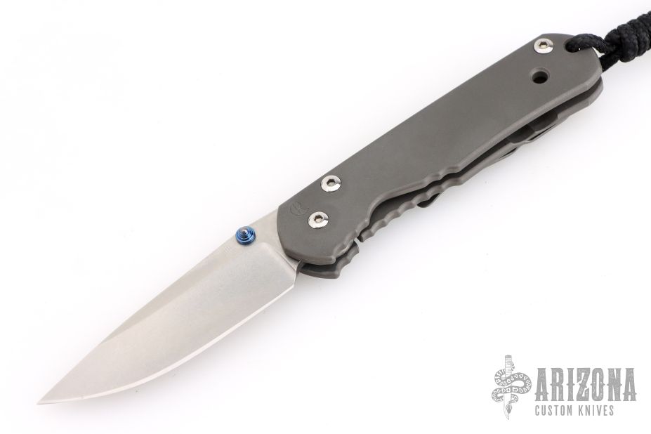 This small Sebenza Classic 2000 by Chris Reeve features a tumble finish blade and bead blast titanium frame. Anodized titanium thumbstuds and barrel spacer. Lanyard hole in pommel. Includes the original box and papers dated February 21, 2006. Has a couple light scuffs, otherwise excellent condition.