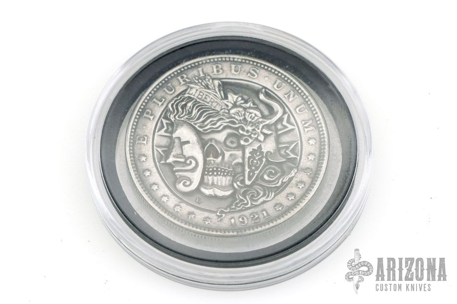 Morgan 1921 Silver Dollar Copy #14 by Vladimir Burkovski. Made of nickel silver. Comes in a protective coin case. New from maker! Comes with COA dated 2026.