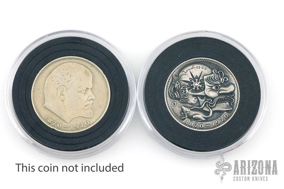 Commemorative 1970 Lenin Ruble - "The Real Faces of Lenin" Series. Copy of original coin made in Nickel Silver. Comes in a protective coin case. New from maker! Comes with COA dated 2026. The original coin in the pictures is only for reference, and is not included with the engraved coin.