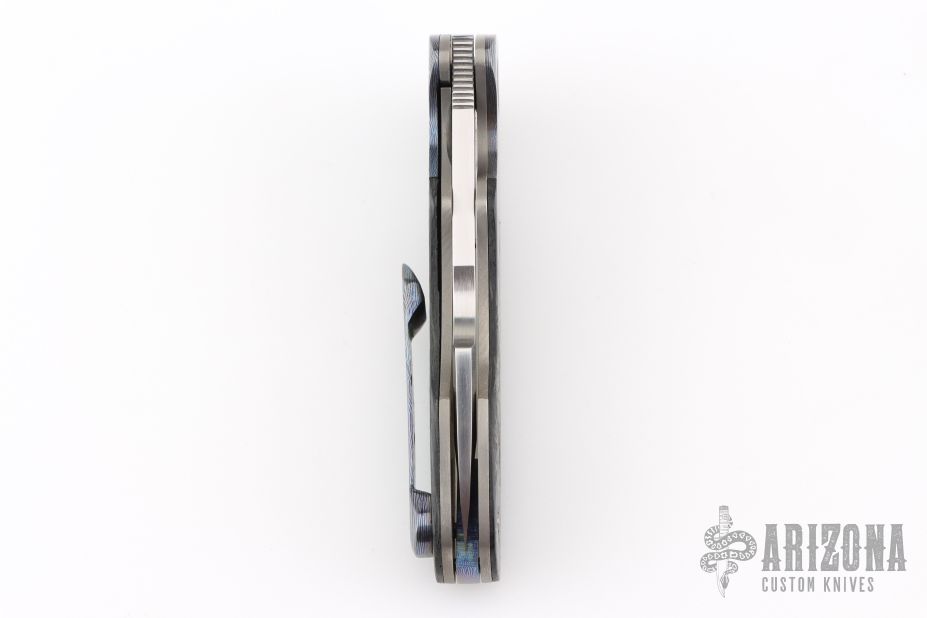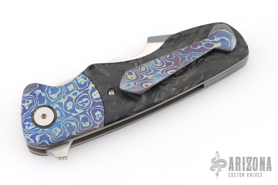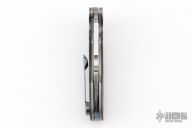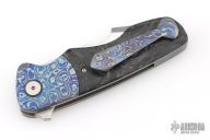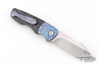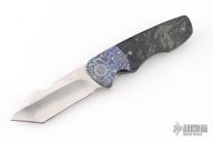 This Stone Head by Victor Barajas features a satin finished tanto blade with notched thumbrest and flipper. The handle is comprised of Mokuti bolsters, marble carbon fiber scales over titanium liners. Sculpted titanium titanium tip up clip, Mokuti pivot and floating backspacer. Comes with zipper case. Has a couple light scratches, excellent condition otherwise.