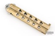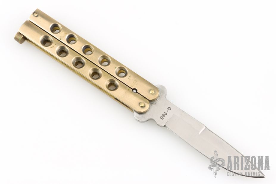This Golden Dragon is a 1980's classic Taylor/Seto Balisong with brass handles. Has a satin finished blade with a sharpened top edge. Has some light scratches and patina, otherwise excellent condition.