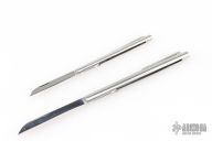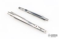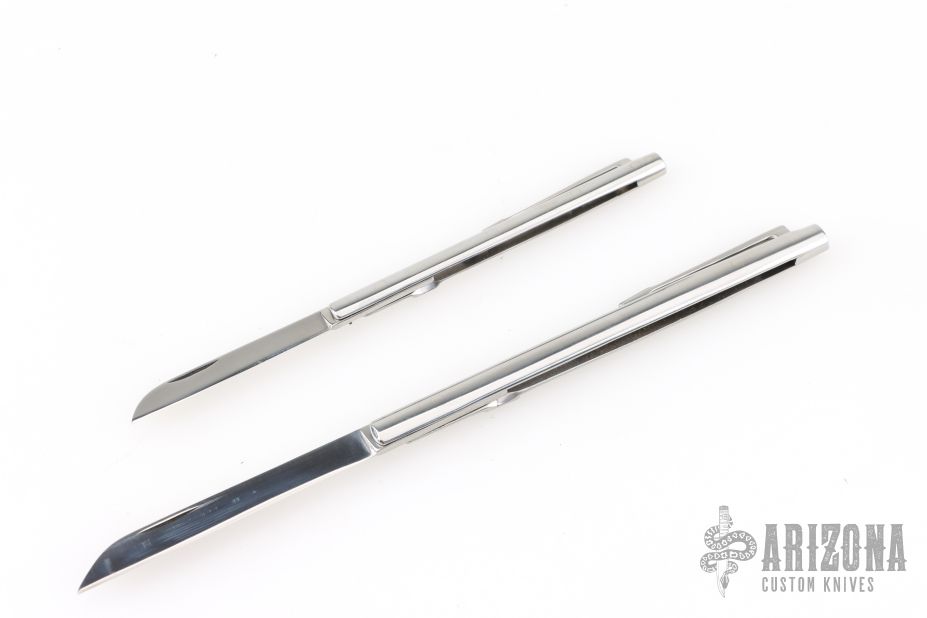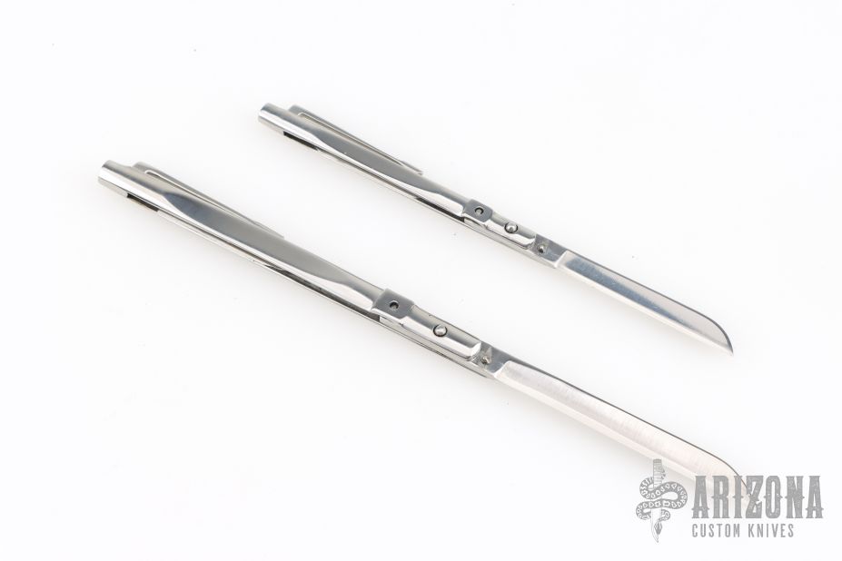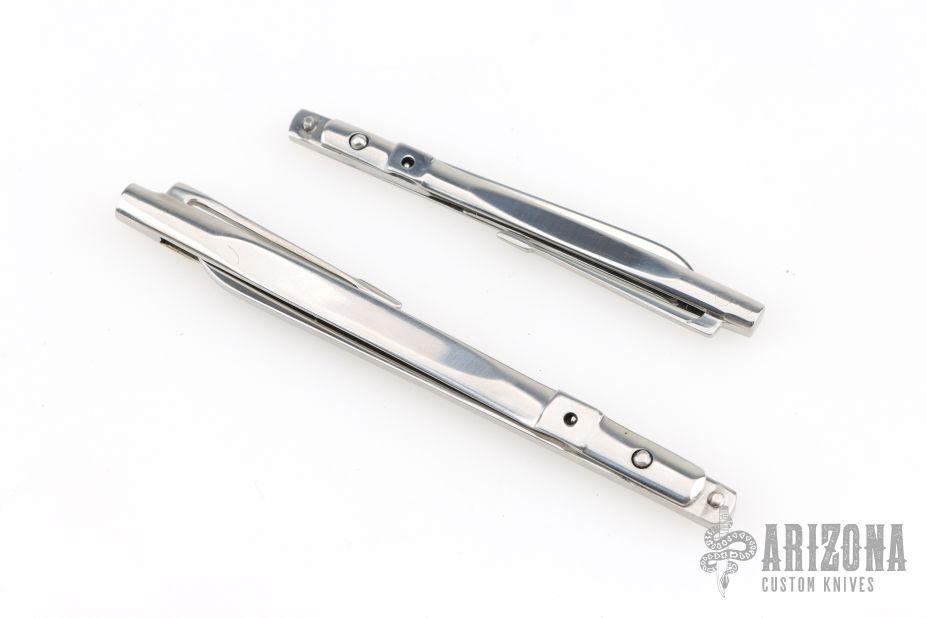They are hand made from stainless steel. Has a pinch locking type mechanism. Separate the handle with your fingers to close.