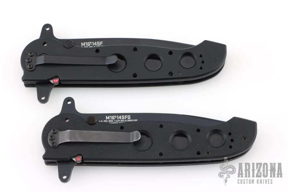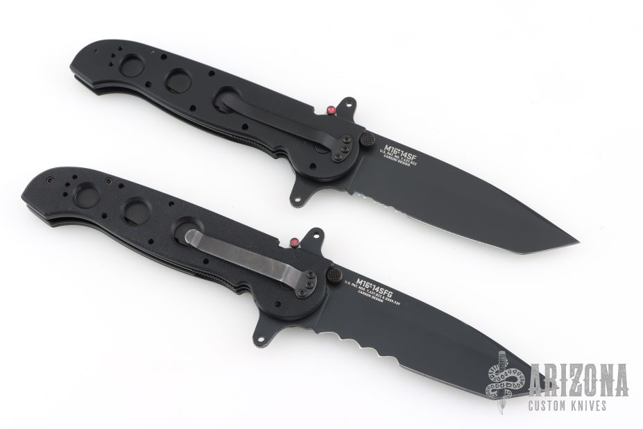 The Special Forces G10 models share a unique design offering a combination of Carson M16 Series features requested by military procurement specialists. The dual grind Tanto blades were specified because they offer maximum strength. The open build allows two Carson Flippers to be incorporated, resulting in a true hilt— very rare in folding knives.