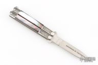 This Balisong by American Blade Chattanooga TN was handmade by TakFukuta. It is marked "1984 American Blade Convention, Knoxville Tennessee" and "1 of 600" on front of blade. Marked "Handmade by Takafuta" and "Made in Japan" on back. The handle has stainless steel handles with engraved bolsters and channel construction, black lip pearl inlays with red liners, t-latch at the butt. Nice lockup open and closed. Includes the original box. Excellent Condition.