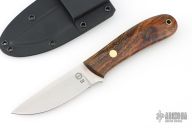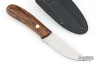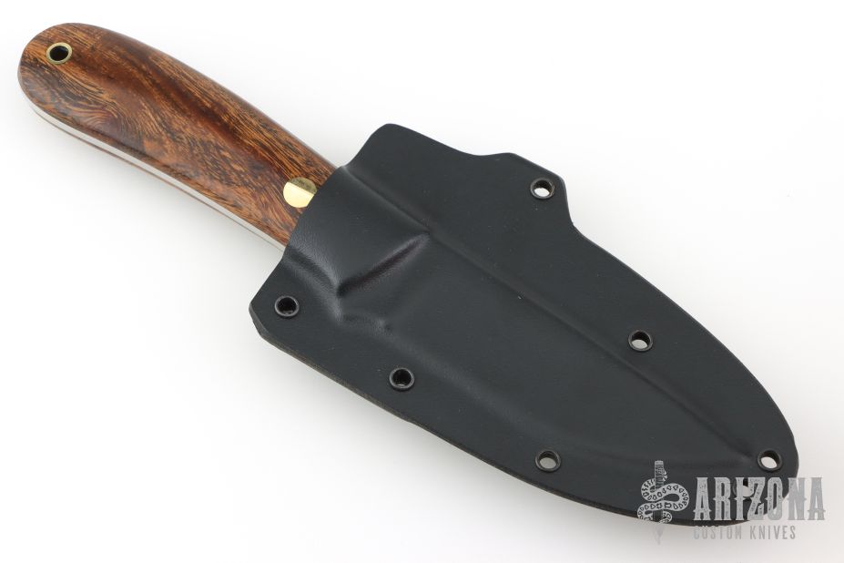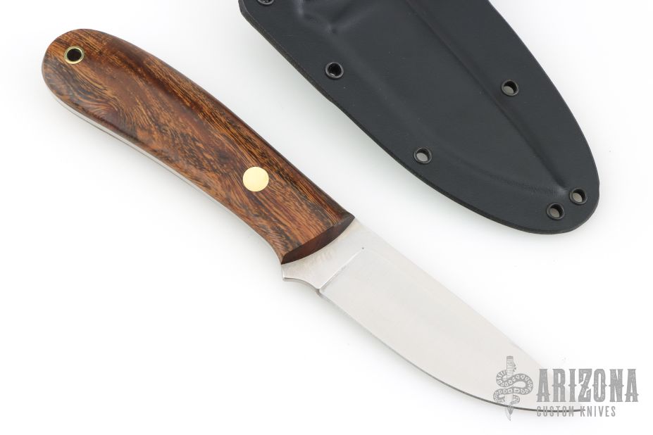 This K-16 Yukon Pro Skinner by Dozier Knives features a satin finished blade with .129" blade stock and 1.050" blade depth, full tang construction. The handle has desert ironwood scales with brass pins and lanyard hole. Comes with kydex sheath with belt clip. New from maker.