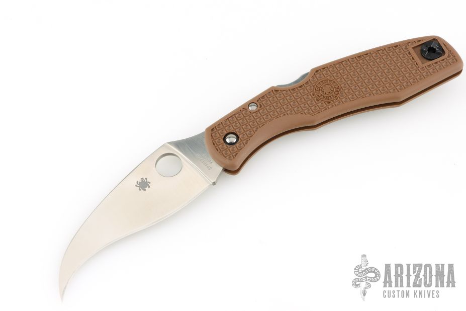 This Matriarch by Spyderco features a satin finish blade with a hawkbill blade made of VG-10 steel. Brown FRN handle for grip, tip up black stainless clip, reversible. Excellent  condition. Includes original box and paperwork. 2010 Sprint Run.