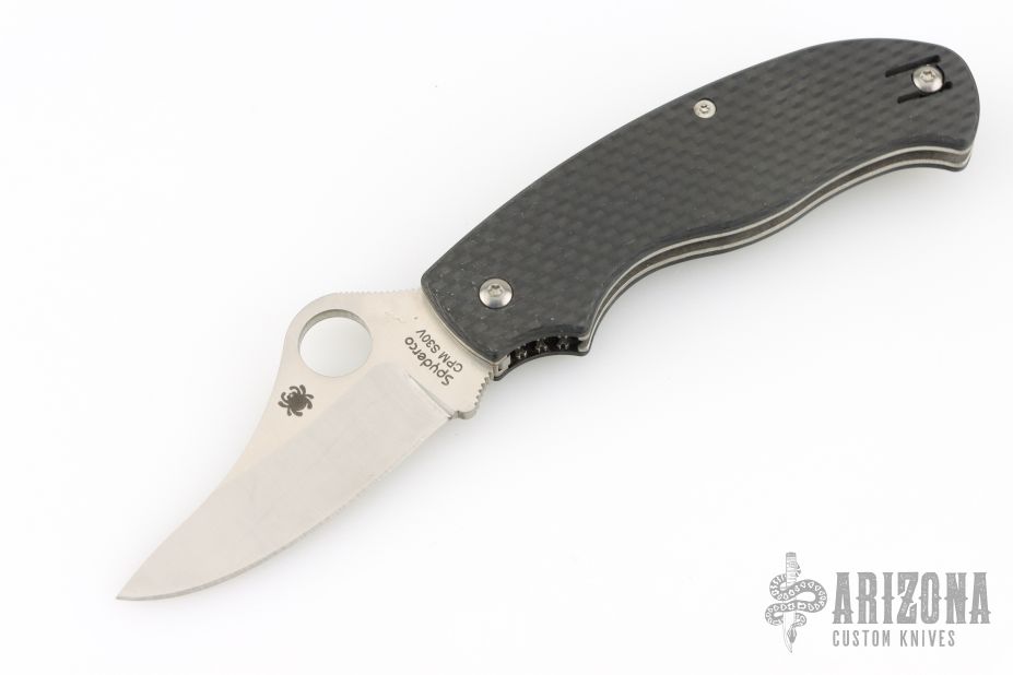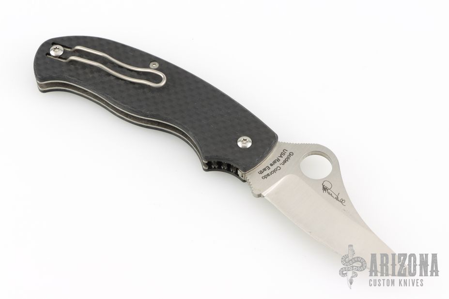 This was a short-lived model for Spyderco. Ralph Turnbull design with carbon fiber scales and a satin finished blade. This is a slipjoint with a magnet "lock". Comes with original box and papers. Has a couple light marks, otherwise Excellent condition.