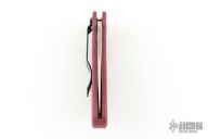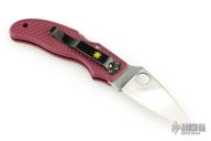 Spyderco persistently pushes the envelope searching for, and testing higher performance blade steels. ZDP-189 is our latest offering and is rapidly asserting itself as an up-and-coming steel. ZDP-189 steel is a Japanese manufactured powdered metal with phenomenal chemistry and 3% carbon. As a result, ZDP-189's hardness measures high on the Rockwell scale and its edge retention is exceptional. The C52PBRG Calypso Jr.'s blade has a thin layer of ZDP-189 steel sandwiched between two layers of 420J2. Layering provides the flexibility and sharpening ease associated with 420J2 while the ZDP-189 layer brings the benefits of exotic high carbon steel. The Calypso Jr. comes with a FRN burgundy handle that is Bi-Directionally Textured™ into a multi-level fish scale pattern, enhancing "grip without slip". The clothing clip is embellished with a gold Spyderco bug logo and attaches with three screws to either side of the handle for right- and left-handers. Limited piece run, available for a short time. PlainEdge blade only.