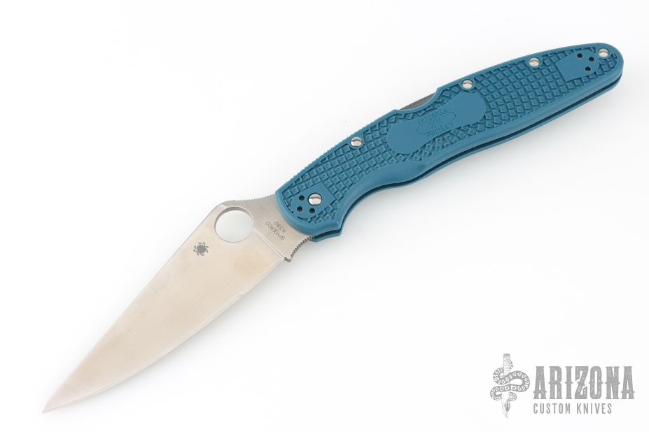 The Police 4 is the largest member of Spyderco's select family of lightweight knives featuring K390 MICROCLEAN tool steel blades. Ideal for extreme cutting challenges, it combines the toughness and superior edge-holding characteristics of K390 with all the proven qualities of this highly refined design -- including the low-friction edge geometry of a full-flatground, PlainEdge blade, a fully accessible Trademark Round Hole, a high-strength back lock mechanism, and a four-position pocket clip.