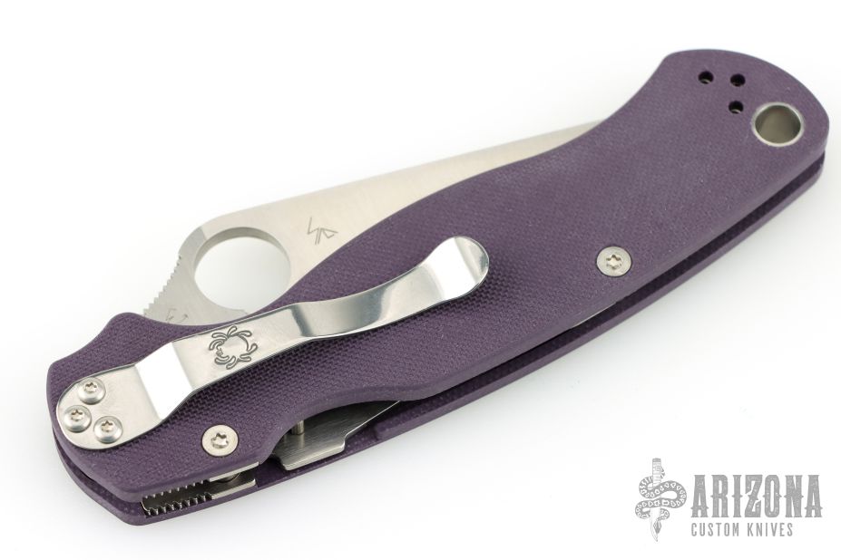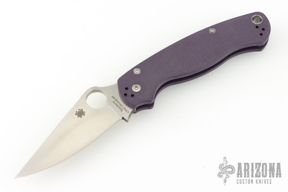 The Spyderco Paramilitary 2 is an absolute benchmark in the knife industry for what a folding knife can and should be, and this variation may be the ultimate Paramilitary 2. The handle has ultra cool textured purple G-10 handle scales complete with skeletonized nested stainless steel liners and a compression lock. Combined with a full flat ground, satin finished, tough as nails, CPM Cru-Wear blade this knife is perfect for users and collectors alike. Get your today at DLT Trading while it's available.