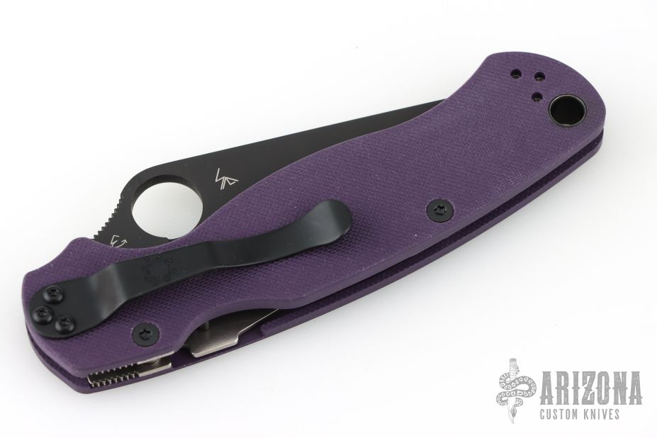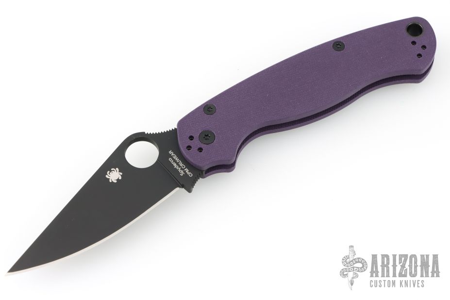 DLT Trading is bringing a new G-10 color and blade steel combination together with our exclusive release of the Paramilitary 2 with purple G-10 scales and black DLC coated CPM Cru-Wear blade. Not only does the black and purple color combination look good, the DLC coated blade adds corrosion protection since this is not a stainless steel blade material. We do expect this to sell quickly so grab one or two for yourself now.