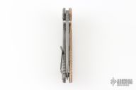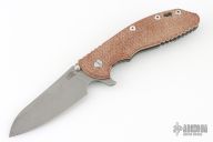 This Bowie Ground XM-24 from Hinderer Knives features a working finished blade with dual thumbstuds and notched thumbrest and flipper. The handle has a micarta cover, textured working finished titanium frame over satin finished barrel spacers, hardware and filler tab and pocket clip, lockbar stabilizer. Includes original box, card, and extra washers. Excellent condition.