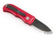 This is a Runt by Pro-Tech featuring an aluminum handle and a black coated drop point blade. It has coil spring action. California legal. Comes with the wrong PT box (Godson) and papers. Has some light scuffs/scratches, great overall condition.