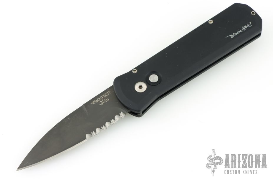 The frame is marked First Production Run, Serial Number 210, and has Blackie Collins' signature. Comes with original Protech Box and papers and instructions. Has a few light scuffs/scatches, Excellent condition.