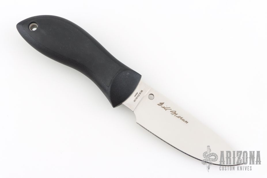 Bill Moran is recognized as the grandfather of American custom knifemaking and the founding father of the American Bladesmith Society. He started pounding steel, making knives more than fifty years ago. If you're lucky enough to find a custom-made Moran to buy, expect to shell out five-figures, minimum. His work and designs are that revered. Spyderco is privileged to offer a production fixed-blade collaboration patterned in Bill Moran's ageless tradition. We've made it available in two distinct blade shapes. The FB02 (pictured) has a drop-point shape while the FB01 has an upswept Bowie-style blade. Both blades are flat-ground VG-10 and carry Bill's signature. They are tapered, starting thick where the blade joins the handle, thinning down the spine to a fine, uniformly ground tip. In the hand the knife conveys a unique feeling of balance, called by some a sweet spot. The sweet spot is due to the blade and handle being comparable in weight. This balance transfers into a feeling of steady control over the cutting edge. The FRN handle three-dimensionally fills out the palm and is inlayed with a panel of non-sliding Kraton. Highly recommended for hunting and camping both models come in a molded Boltaron sheath with multi-position G-Clip fastening system. Specifications Length Overall: 8 1/16" (205 mm) Blade Length: 3 7/8" (99 mm) Cutting Edge: 3 3/8" (86 mm) Blade Thickness: 1/8" (3 mm) Blade Steel: VG-10 Weight: 3 oz. (84 g) Handle Material: FRN