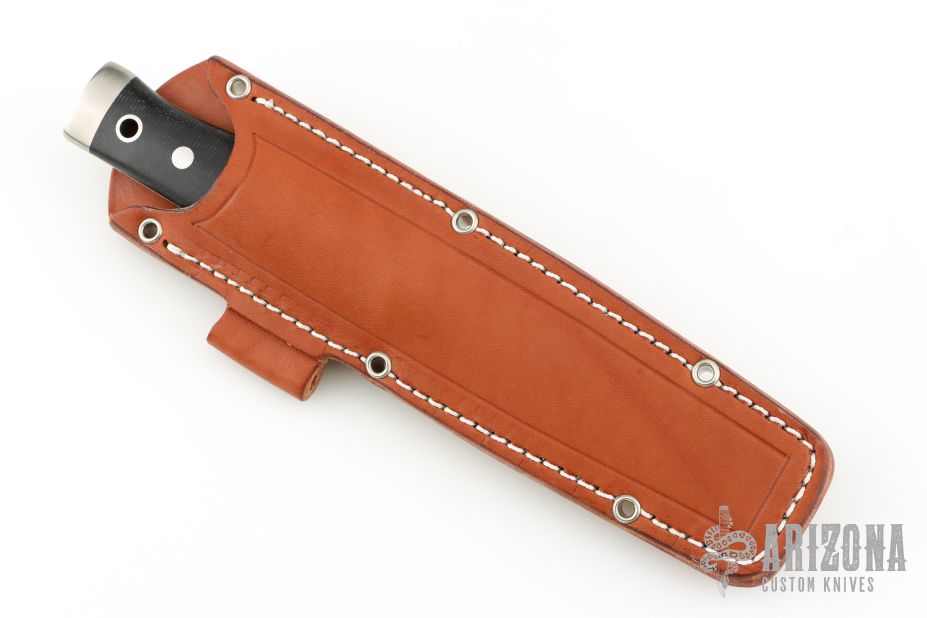 We gave the Compact Forest the same innovative leather sheath as the Forest knife. It's ambidextrous, accommodating either vertical or horizontal belt carry, and it features hollow rivets that allow you to lash it to your gear. It also has an integral firesteel loop and a pair of rare-earth magnets to retain the knife -- even inverted. No matter how rugged the terrain, this sheath will retain the Compact.