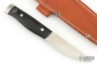 The Compact Forest has all of the features of its larger sibling, our full-size Forest Knife. Its blade is A-2 tool steel, triple-tempered, and the tang is drawn softer for extra toughness. The hand-ground convex-Scandi grind gives maximum edge-holding, making woodworking afield an easy task.