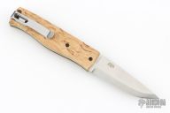 The PK-70 pocket knife is a non-locking folder from Brisa (EnZo) Knives of Finland. It features a beautiful curly birch wood handle with stainless liners and slipjoint mechanism. The blade is CPM-S30V stainless steel with a Scandi grind. Open via nail nick and carry with the deep tip-up pocket clip. The PK70 is an exceptional knife and legal in most places.