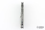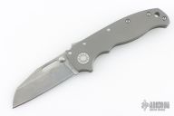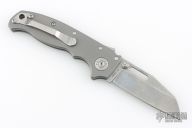 The AD20.5 by Demko Knives features the impressive Shark Lock and an even more impressive price point. The Shark Lock mechanism is situated on the spine of the knife and operated with a ramp-like ‘fin’, allowing you to flip the blade open and closed at will. It's probably the best thing about this knife and design, how quickly it can be deployed and ready for action. It acts as a blade launcher and a little wrist action is all it needs. This one has a stonewashed blade and bead blasted titanium handle. Has scuffs and scratches, great overall condition.