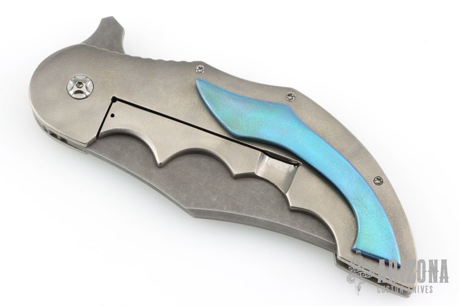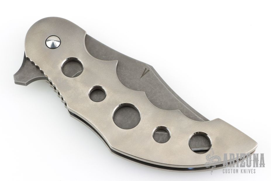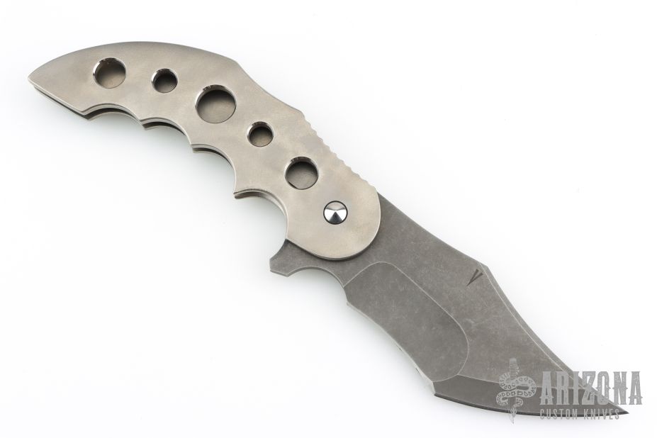 "Each blade is handmade by me in the USA using manual machines. I specialize in hard use tactical folders with the best materials I can get my hands on. My current blade steels are RWL-34, stainless steel Damascus, and San Mai. I use various materials that include Titanium, Carbon Fiber, Zirconium, MokuTi, Timascus."
