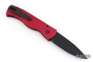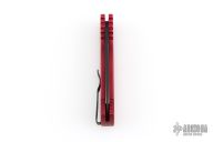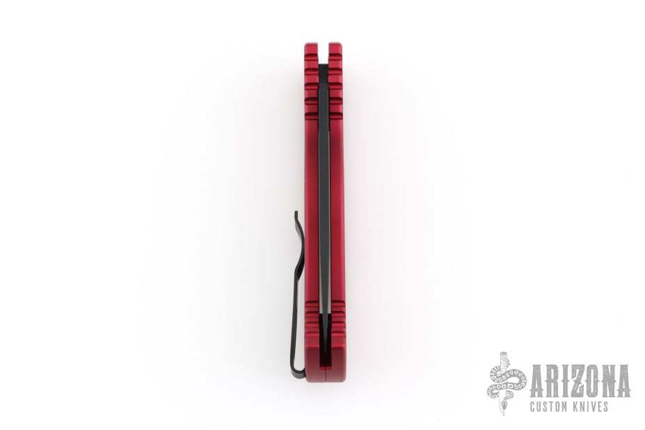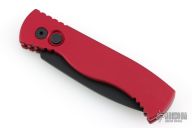 This Tactical Response 2 features a black blade with notched thumbrest. The handle has a red aluminum frame with black hardware and black stainless steel tip up clip. Comes with original box and papers. New condition.