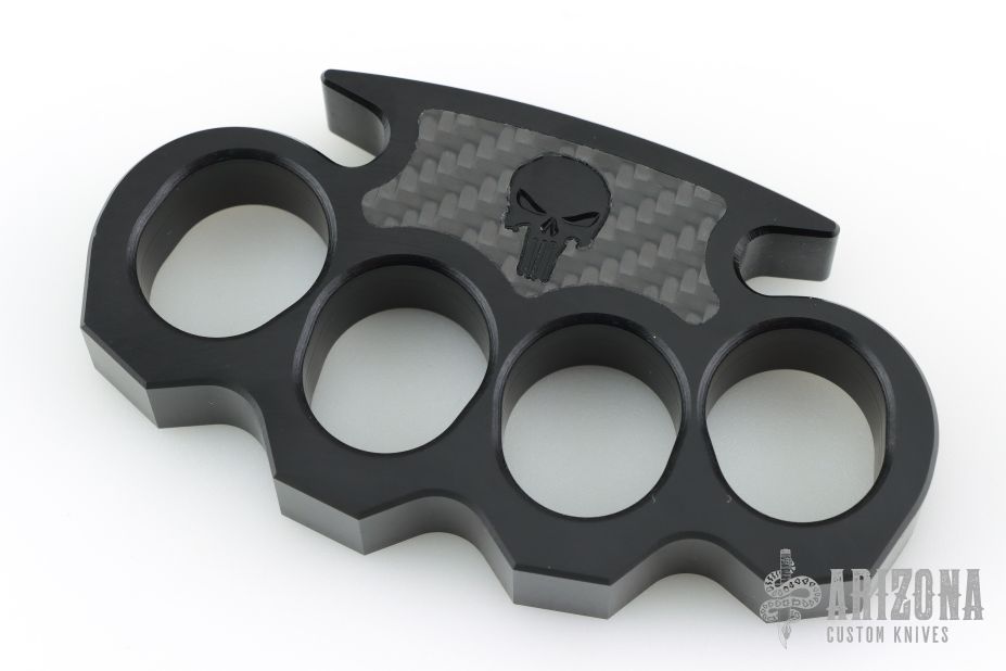 This Custom Aluminum Knuckle by Burn Knives is made from .750" thick black aluminum with carbon fiber inlays. Excellent condition.