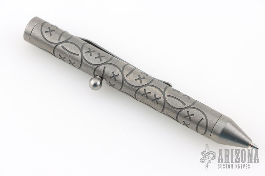 This mini Tibolt bolt-action pen is made completely of titanium with the only exceptions being the ink cartridge, and the spring. Pen is new from Mr. Fellhoelter and comes in original plastic storage tube. Frankart Faces.