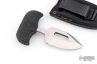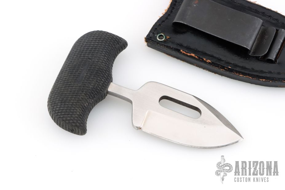 This "Urban Skinner" Push Dagger by Cold Steel has a satin finished spear point blade with a sharpened top edge, hidden tang, .185" blade stock, 1.296" depth. Handle is non-slip polymer. Has a couple light scratches, otherwise excellent condition. Comes with original black leather sheath with clip.