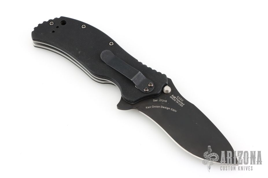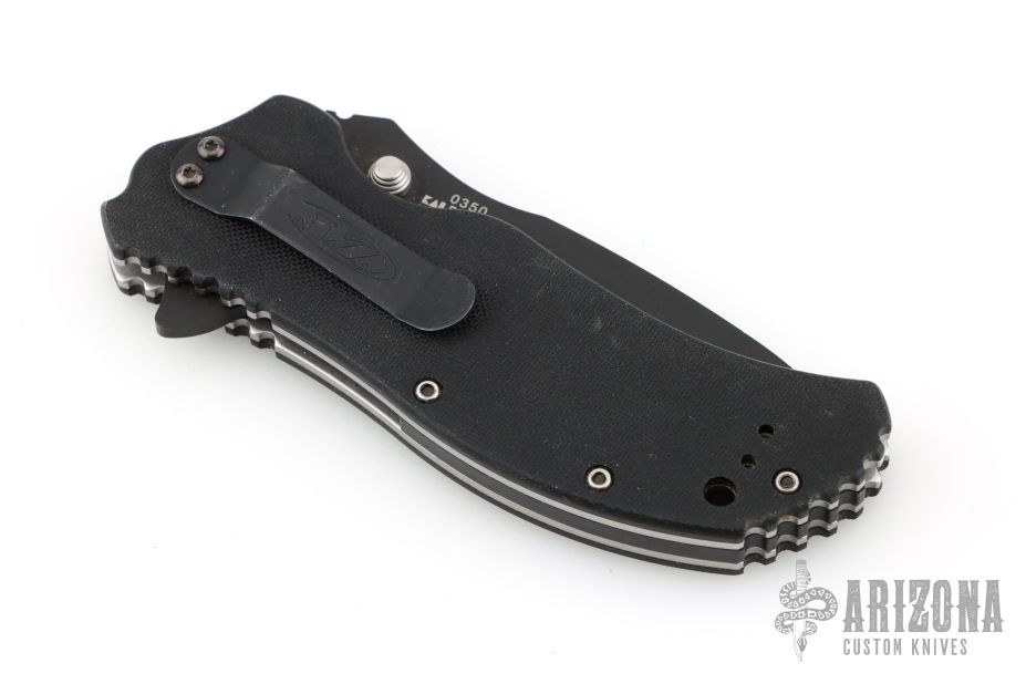 This 0350 liner lock flipper by Zero Tolerance features a recurve spearpoint blade with a non-reflective finish, stainless steel liners and black G10 scales. Ken Onion Design. It also features the Speed safe assisted opening system. #27216. Has some scuffs and scratches, great overall condition.