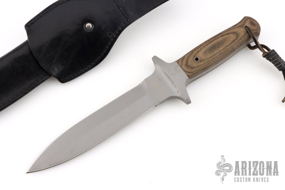 This is a full integral dagger, drop-forged out of one massive piece of 440C stainless steel. This technically challenging procedure guarantees the maximum in stability. You can't hold it in your hand without recognizing its unbelievable strength and sturdiness. A true masterpiece, both for the collector and the user. The fully double-edged 7" blade provides an impressive appearance. Carefully sculptured green canvas Micarta scales provide an excellent grip under all conditions.