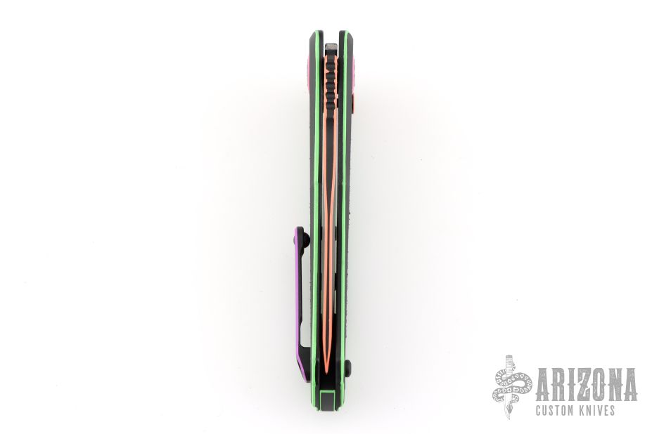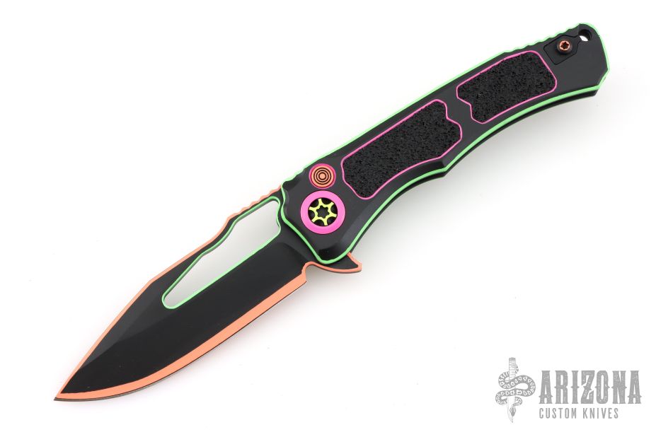 • Blade: Drop point blade with a 80's cel shade finish made from CPM MagnaCut steel.
