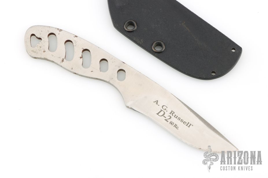 This knife is a Darrel Ralph design by Camillus, made for AG Russell. Satin finished blade, .122" blade stock and 1.022" blade depth. Comes with kydex neck sheath. Has some light scratches and oxidation, otherwise excellent condition.