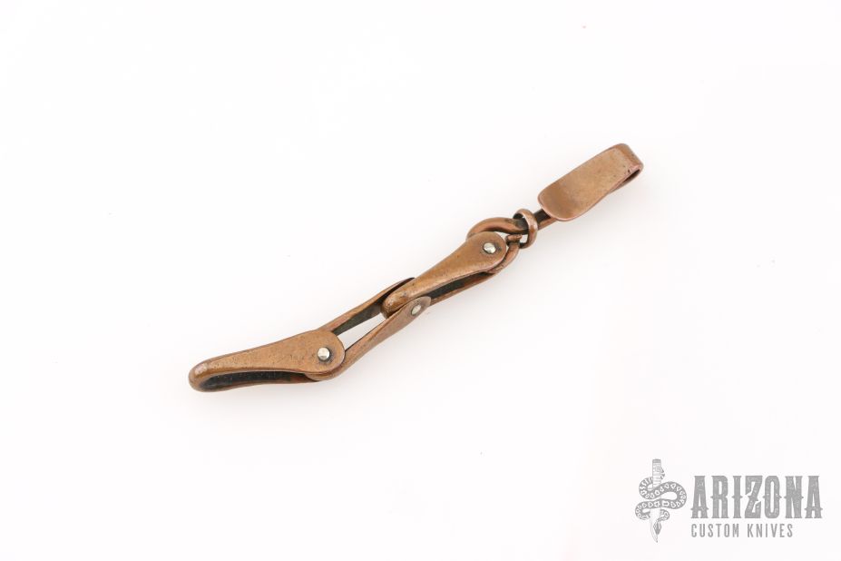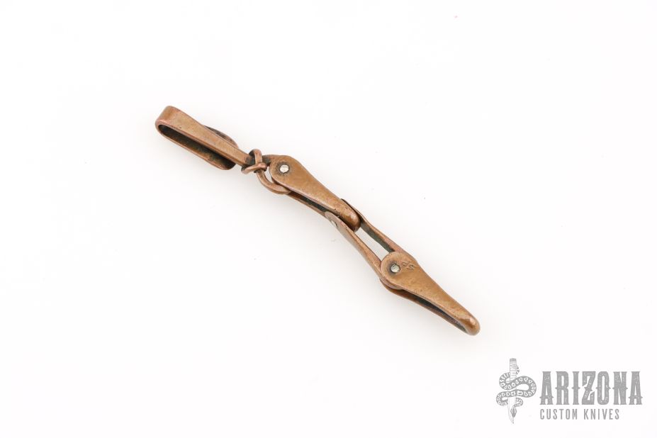 Panchenko Copper Keychain/Carabiner/Dangler. Every link and pin is individually handmade and forged by Serge. The last link and keychain are both marked SP. Has some scratches, and a light patina. Great overall condition. Links are 1" length x .375" width.