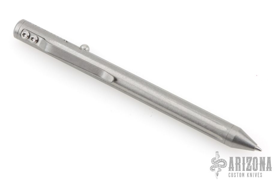 This unique bolt-action pen is made completely of titanium with the only exceptions being the ink cartridge, and the spring. Pen is new from Mr. Fellhoelter and comes in original plastic storage tube.