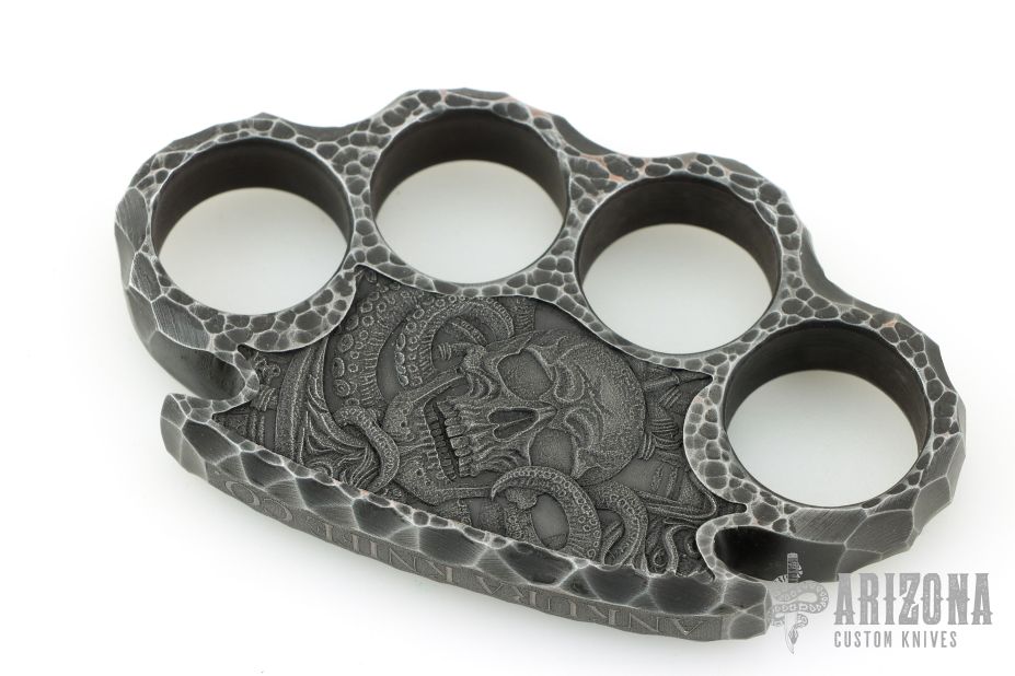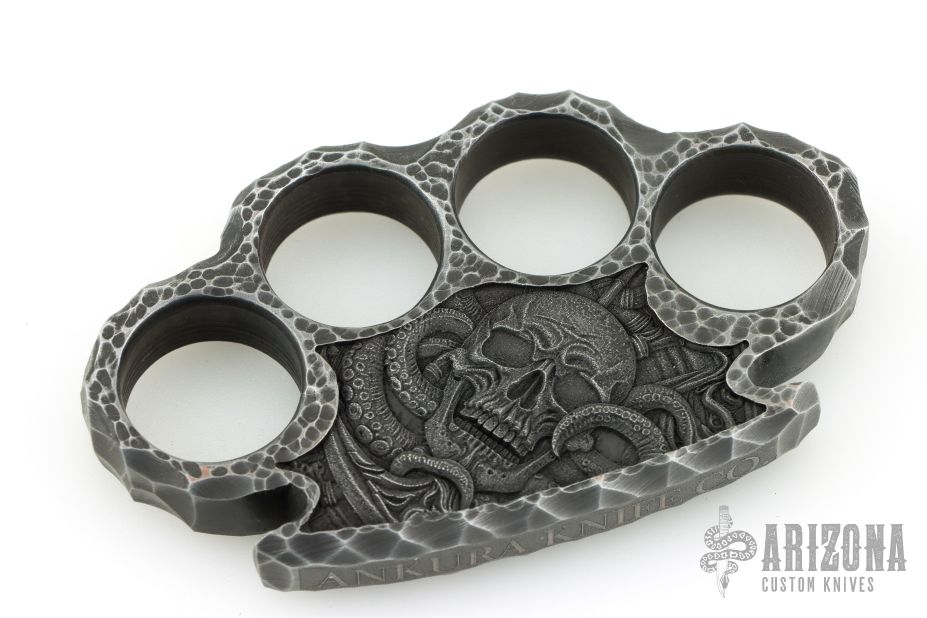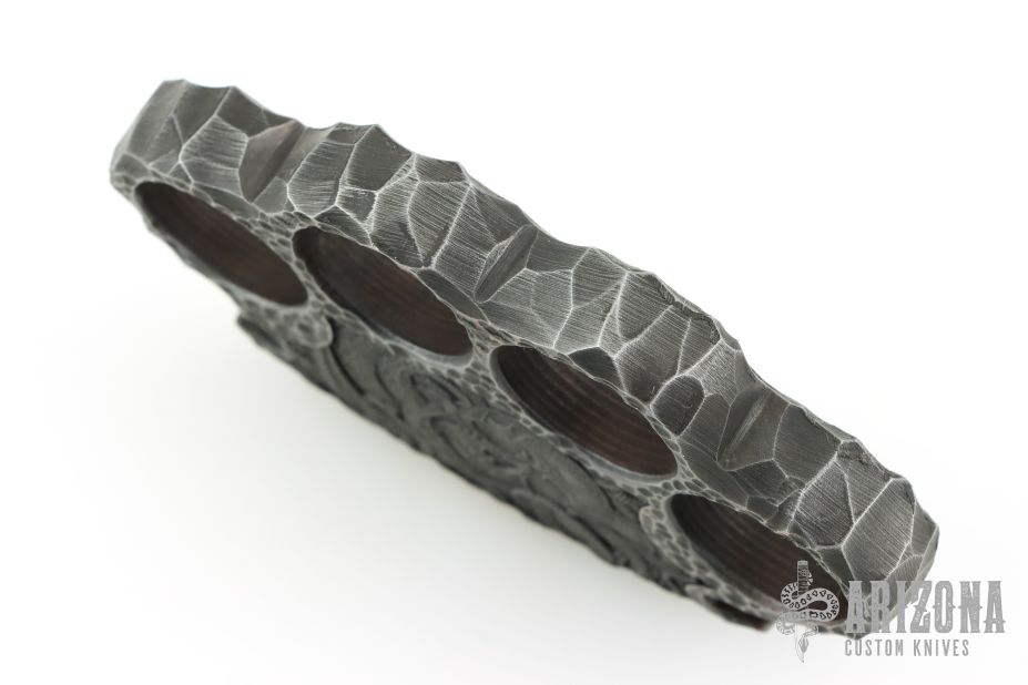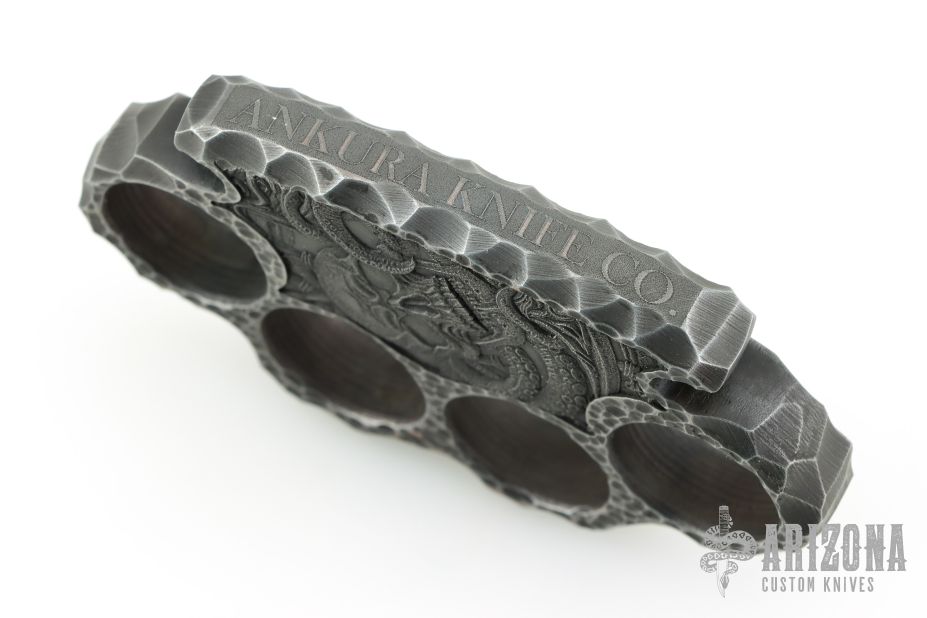 This set of Steel Knuckles by Ankura Knife Co. is made from .580" thick steel with carved and laser engraved textured. New condition.