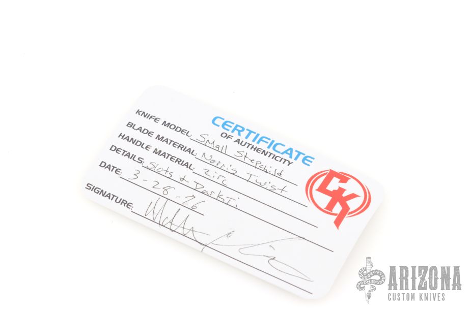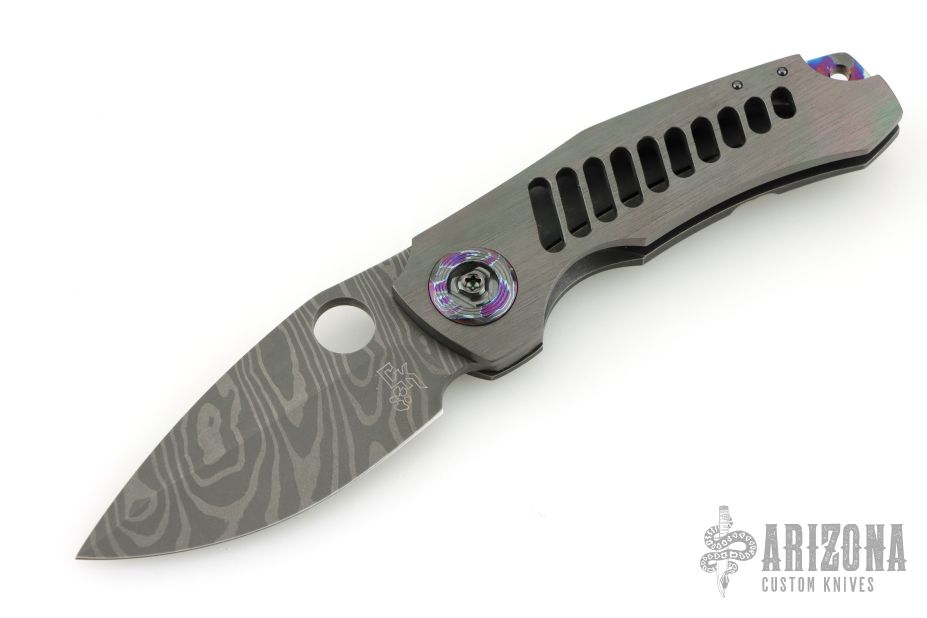 This Small Stepchild by Christensen Knifeworks features a striking Norris Damascus blade with a thumb hole opener for smooth, controlled deployment.