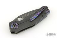 The handle is crafted from a zirconium frame, paired with a tip-up DarkTi pocket clip and matching pivot collars for a sleek, high-contrast finish. Excellent detent, solid lockup, and precise blade seating highlight the build quality.