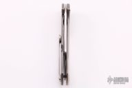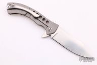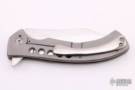 This Pirate Jack flipper by KC Gray features a hand rub satin finished blade with a fuller that has been engine turned and a flipper. The handle has a bead blasted titanium bolsters, liner and frame with mother-of-pearl scale, mokuti pivot collar, polished titanium tip up clip. Rides on bearings, nice detent, lockup and blade seating. Comes with a zippered case and COA dated 4/17. Has some really light scratches on the clip, otherwise excellent condition.
