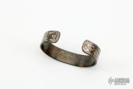 This bracelet has a 3/4" opening and is 2 1/8" accross. Brand new from the maker at the 2013 Blade Show.