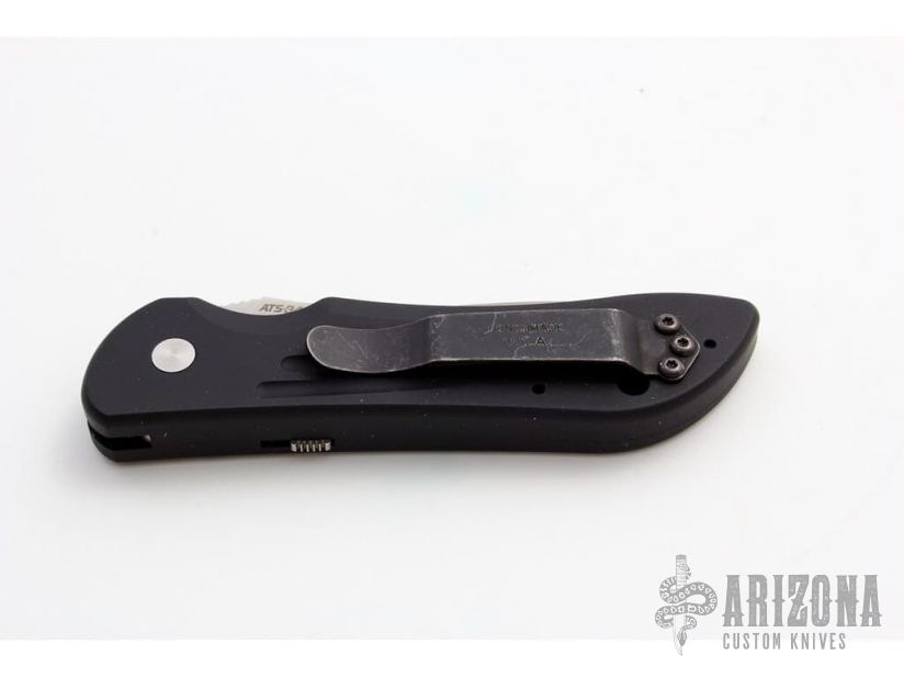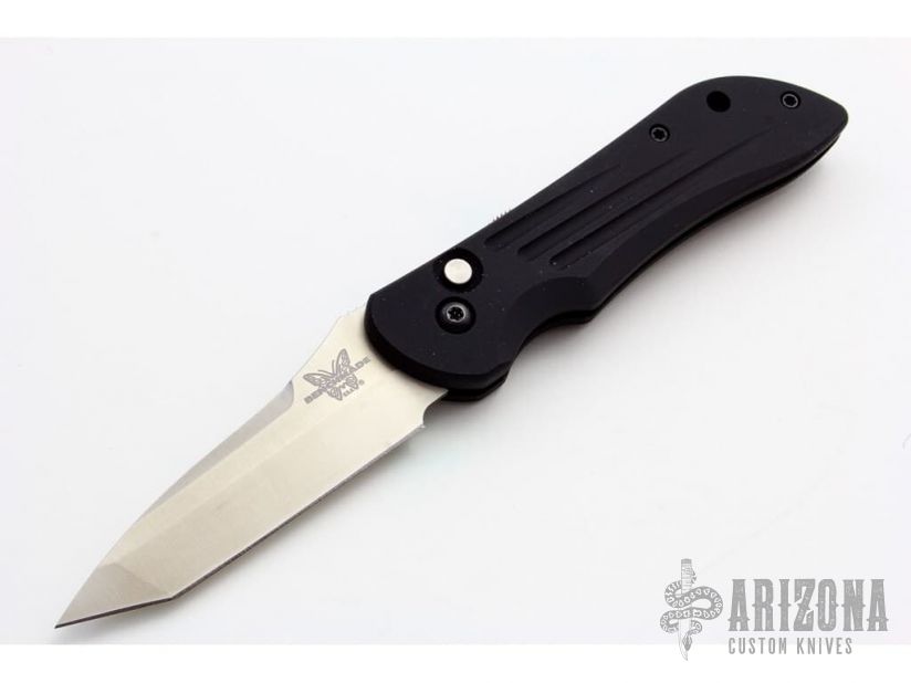 This is a Benchmade/Elishewitz collaboration. Satin finished tanto style blade. Black aluminum handle. Includes box and paperwork. This knife is a prototype dated October 1999, is 1 of 50. Mint Condition. Blade Steel: ATS34