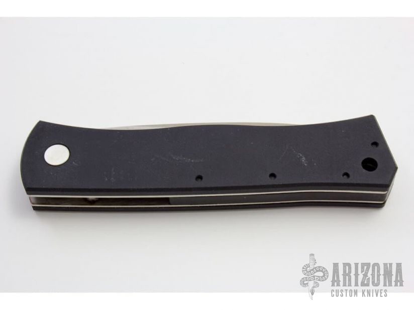 This Brend II combat folder features a satin finish blade, black anodized aluminum frame with a single titanium liner for the lock. Perfect lock up. Stamped with the benchmade Bali-song mark and the Brend Design mark. Nice and light weight. The handle has light scuffing from carry and blade appears to have been sharpened. Scale screws show wear. Blade Steel: ATS-34
