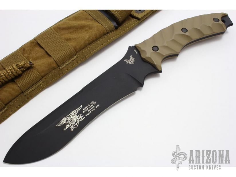 Plain edge black coated blade with OD carved G10 scales. Full tang construction. Blade is 3/16" thick and 1 1/2" deep. Tactical nylon sheath. A couple of sheath scuffs on the blade. Excellent condition. Blade Steel: CPM 154 CM