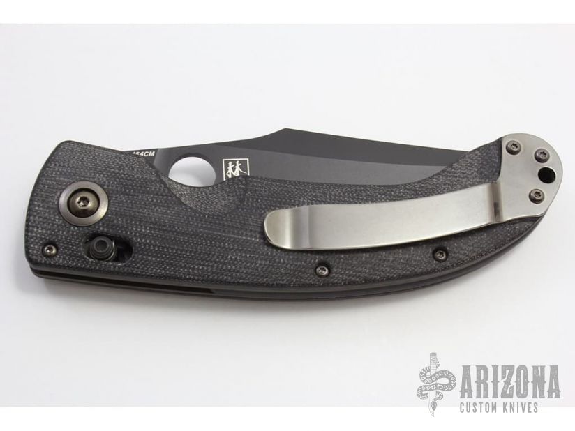 This Onslaught Axis Lock Folder has a black finished 154-CM stainless steel clip point partially serrated blade with thumb hole. Handle is black G10 over black stainless steel liners, and black fiber backspacer. Tip up gun metal gray stainless steel clip. Lanyard hole. Great lockup, detent, and 90% blade centering. Very light side-to-side blade play, but excellent condition otherwise. Blade Steel: Black Finished 154-CM