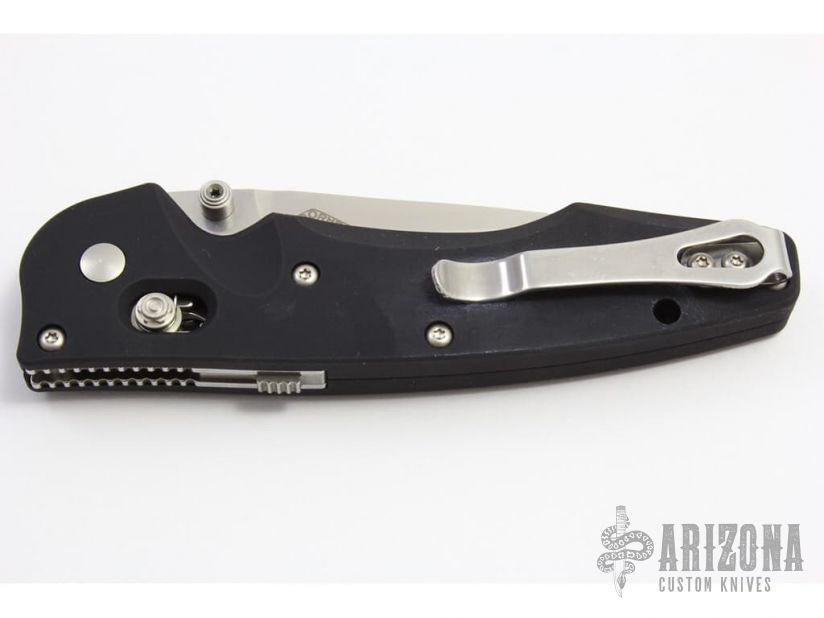 The Benchmade Emissary 477 is a slick looking knife that has a lightweight feel and snappy spring assisted action! The Emissary features the AXIS assist locking mechanism with a safety. The drop-point blade has ambidextrous thumb-studs for easy opening. The handle is CNC machined from a billet of high-strength aluminum alloy. Also includes reversible tip-up pocket clip. Osborne design. Comes with original box and papers. Excellent condition, a few light scuffs on the frame. First production run #256/750.