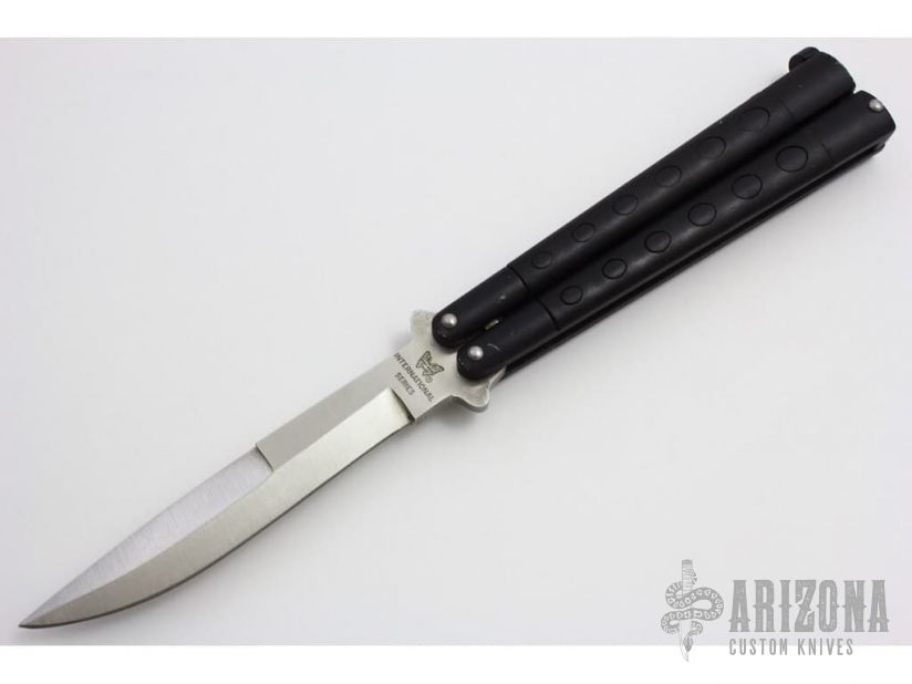 Balisong USA started manufacturing butterfly knives in the late 1970s, then changed its name to Pacific Cutlery in the early 1980s, before finally becoming Benchmade. The earlier knives featured a wide variety of custom blade designs (many of which were hand ground by master knifemaker Jody Samson, well known for making the swords in the movie Conan the Barbarian), as well as a number of exotic inlays for the handles (ivory, prehistoric ivory, scrimshawed ivory, mother-of-pearl, ebony, tropical woods, etc.)