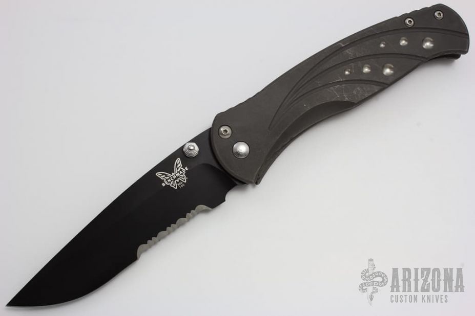 The Subrosa is a collaboration project between Ken Steigerwalt and Matt Lerch. They have patent pending status on this mechanism. They sold the manufacturing rights to Benchmade, who produces factory versions utilizing this mechanism.The key elements that make this assisted mechanism a cut above are the two titanium leaf springs connected together with a hardened roller that engages on the blade. Because the roller follows the blade during the opening and closing motion, there is little to no wear to the components.