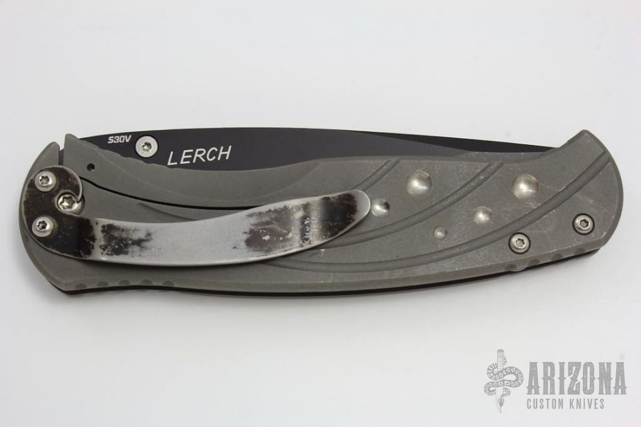 Stainless tip down carry clip, titanium frame and S30V blade. Comes with drawstring bag. Has scuffs and scratches, has been used and carried, clip is well worn. Blade is in good condition.